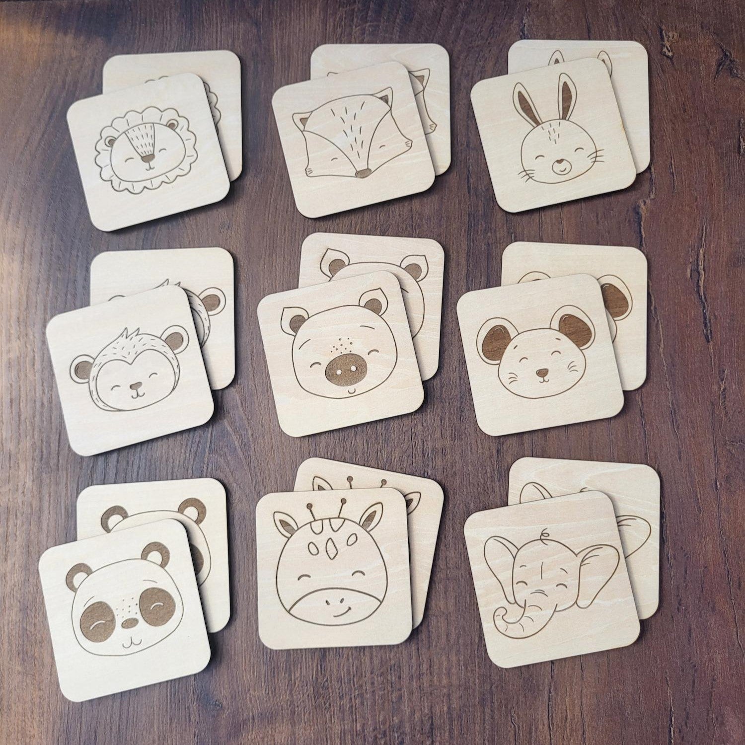 Faites découvrir les animaux aux enfants tout en stimulant leur mémoire et leur concentration avec ce joli jeu de memory en bois. Chaque carte est gravée avec des animaux mignons, parfaits pour apprendre à les reconnaître tout en s’amusant.
